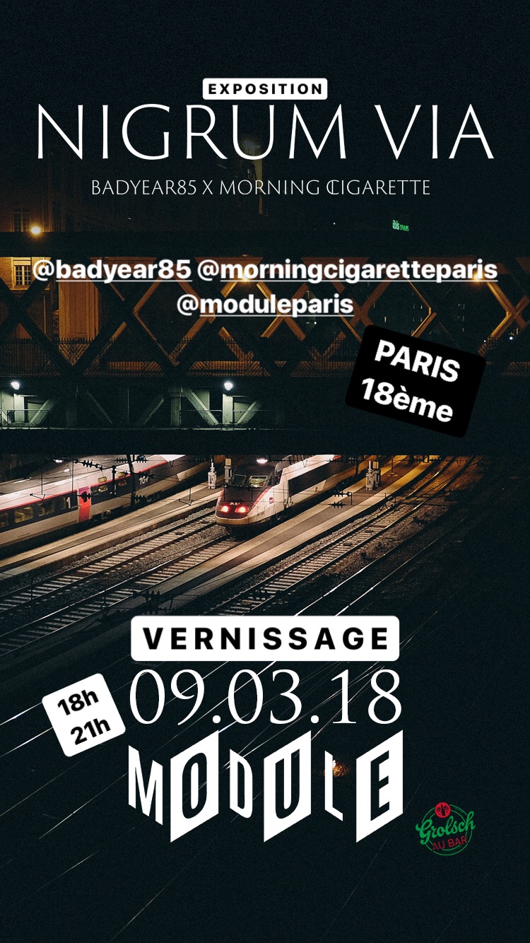 Nigrum Via. 6 mars 2018 par starcowparis Photo exhibition Nigrum Via, a photo book created by BadYear85 & Morningcigarette. 09/03 at Module (9 Rue Cyrano de Bergerac, 75018 Paris) 18h-21h. Be there. Partager : Cliquer pour partager sur X(ouvre dans une nouvelle fenêtre) X Cliquez pour partager sur Facebook(ouvre dans une nouvelle fenêtre) Facebook J’aime chargement… starcowparis Laisser un commentaire Annuler la réponse. Δ