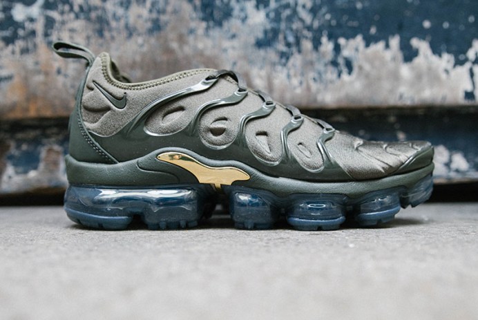 New dope silhouette from Nike, the Air Vapormax Plus; two iconic design melting in here and we love it. Peep the khaki one’s for men, that gold details tho. The women color way is crazy. Both pairs will be available in store and online 25/01 for 210e.